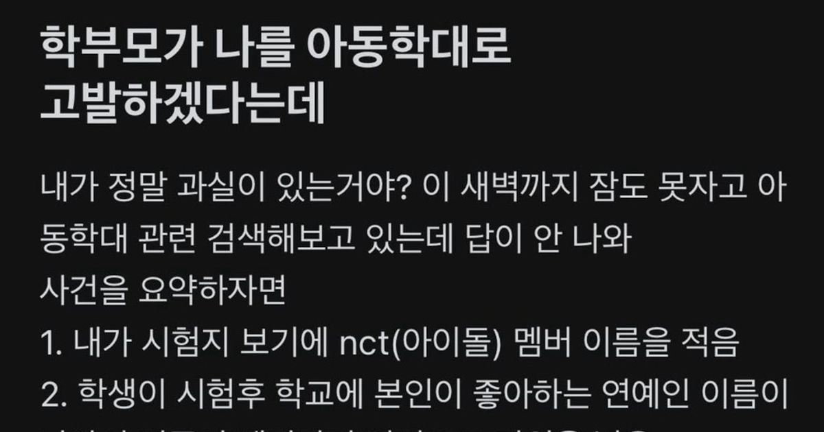 시험지에 아이돌 이름 넣어서 아동학대로 고소당한 교사